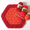 An innovative new way of crocheting in the round*. The mandala gets very soft and drapey and will be perfect for a pillow or just as a decorative element like a table topper.