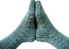 Socks knit from the cuff down with a standard heel flap. This understated stitch pattern is equally nice for men’s and women’s socks.
