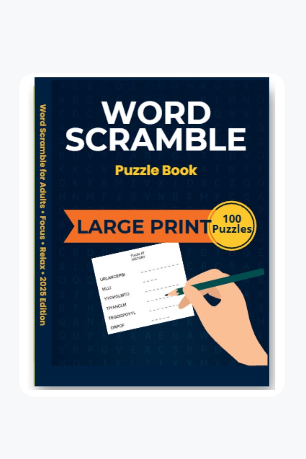 Enjoy a fun vocabulary challenge with this large print word scramble puzzle book for adults. Designed for relaxing mental stimulation without eye strain, it’s perfect for puzzle lovers who want a clean, enjoyable screen-free activity.