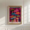 Inspired by contemporary exhibition posters and retro Japanese art, this design blends modern aesthetics with nature and organic forms. It works beautifully in eclectic, maximalist, or modern interiors and pairs effortlessly with botanical, abstract, or colourful gallery wall collections.