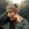 MC: SnailYarn Ultimate Sock (75% Superwash Merino, 25% Nylon 465 yards 425 meters/100 g), col. Dust II, approx 275 yards/250 meters (for the inner hat).CCs: SnailYarn Gradient Sock set (75% Superwash Merino, 25% Nylon 465 yards 425 meters/100 g 5x20 g), col Crimson Sunset, approx 165 yards/150 metres (for the flowers)