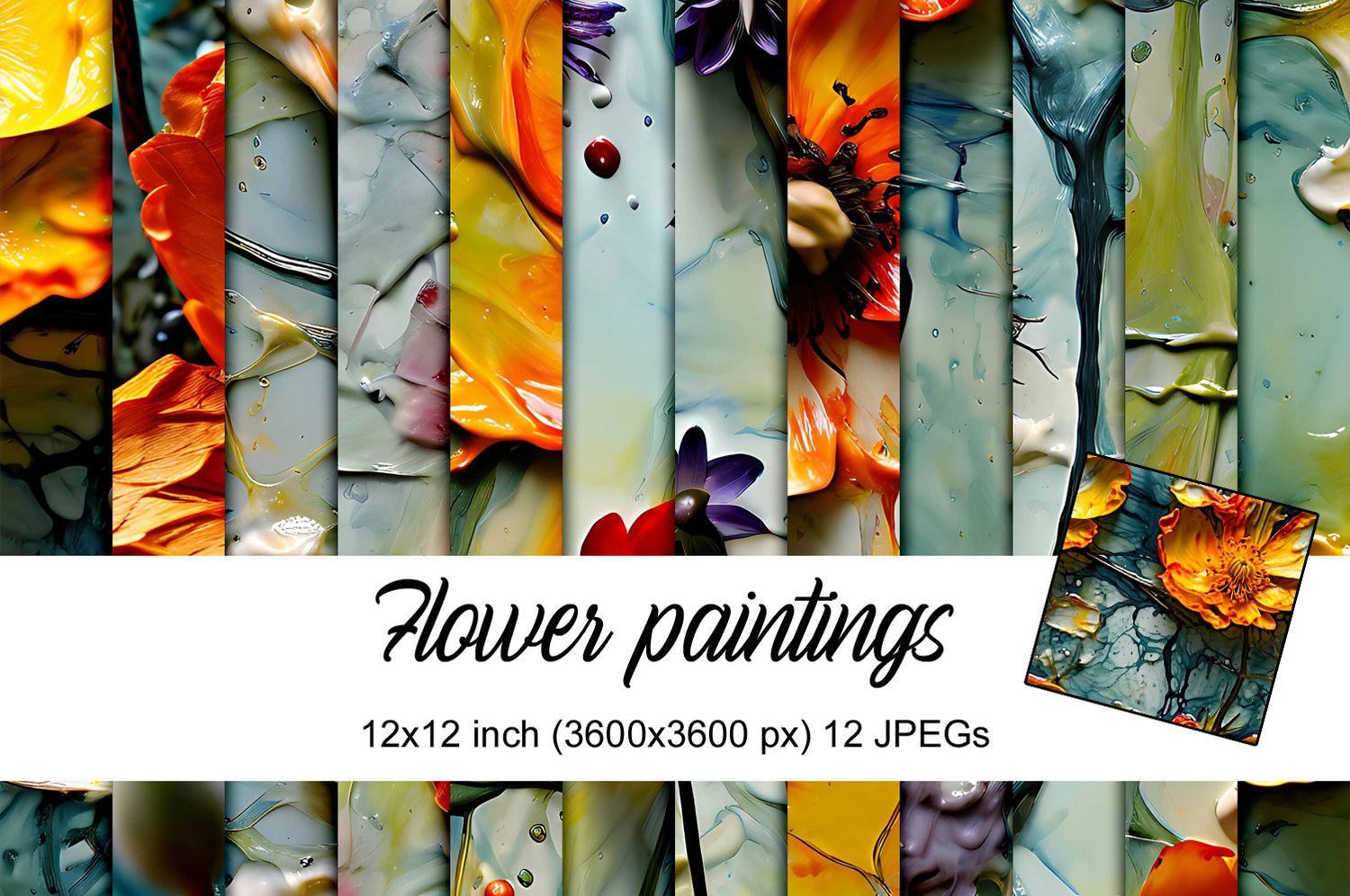Flower paintings is collection of 12 digital images, in size of digital paper – 3600 x 3600 pixels (or 12×12 inches).