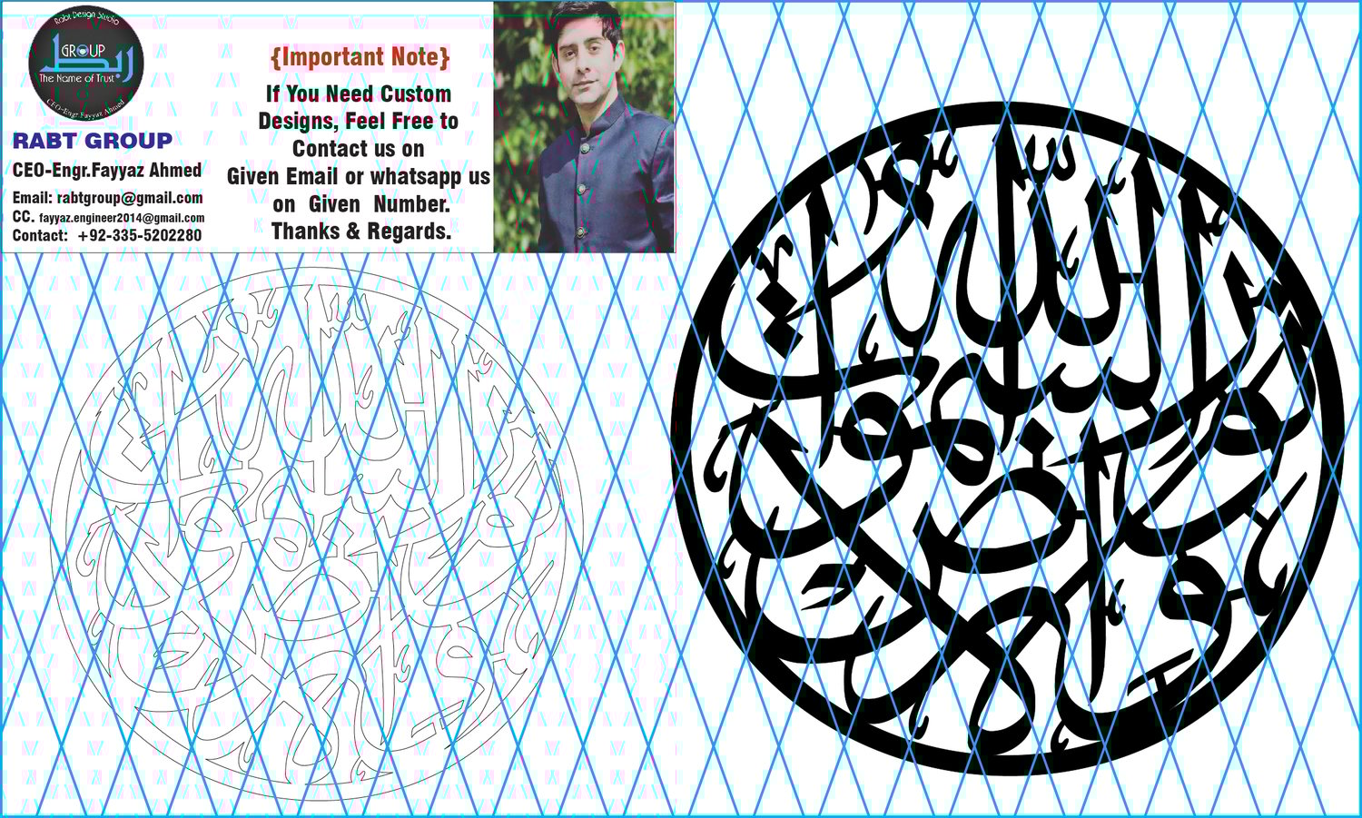 Bring the spiritual light of "Allah Ho Noorus Samawati Walard" into your projects. Rabt Group’s premium design files are ready for immediate download, allowing you to craft decor that radiates faith and beauty. Download now and start creating!