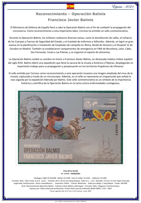 España 2021 – Operación Balmis | Ficha PDF sellos (Catálogo Sooluciones 03948)