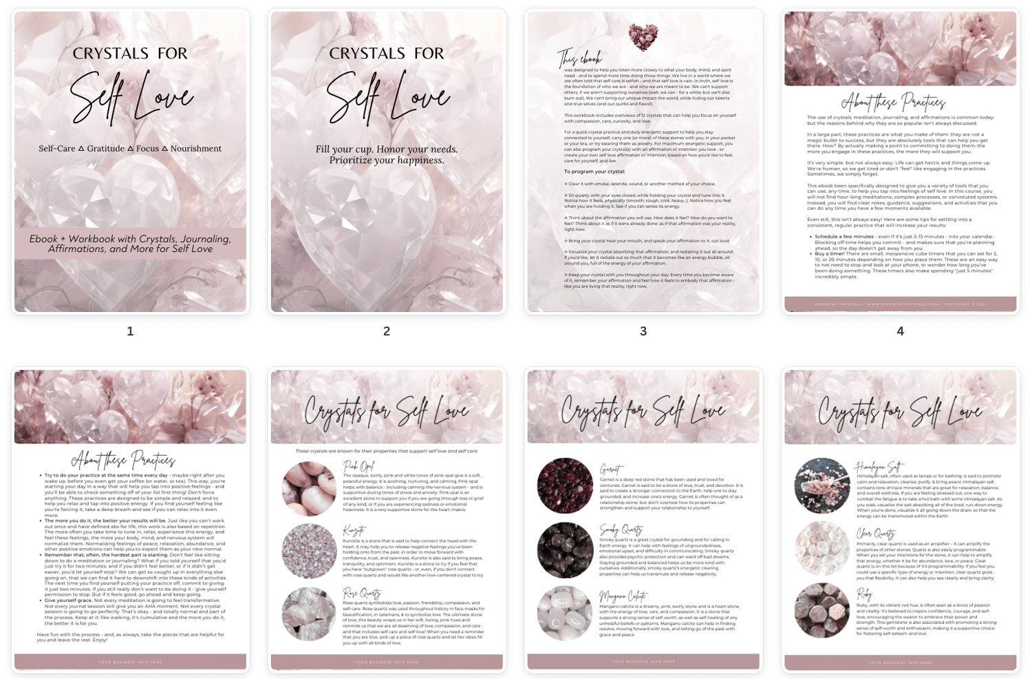 Done for You: Crystals for Self Love 18-Page Ebook/Workbook CANVA TEMPLATE