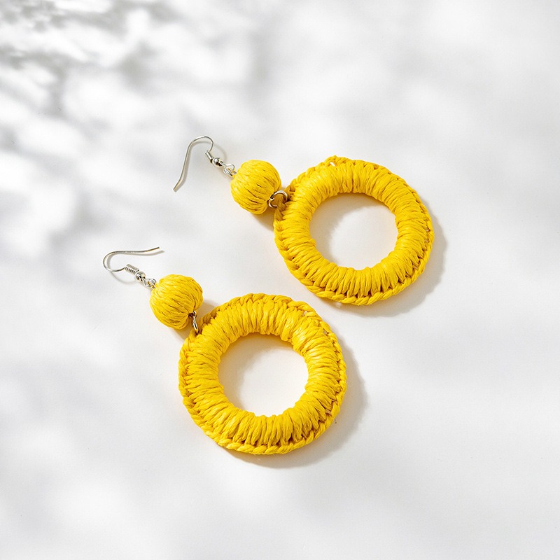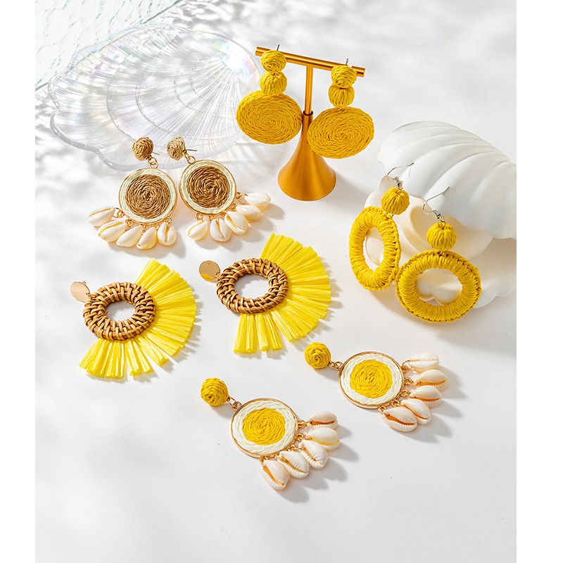 Beautiful Yellow Woven Lafite Earrings for Tourism and Vacation.