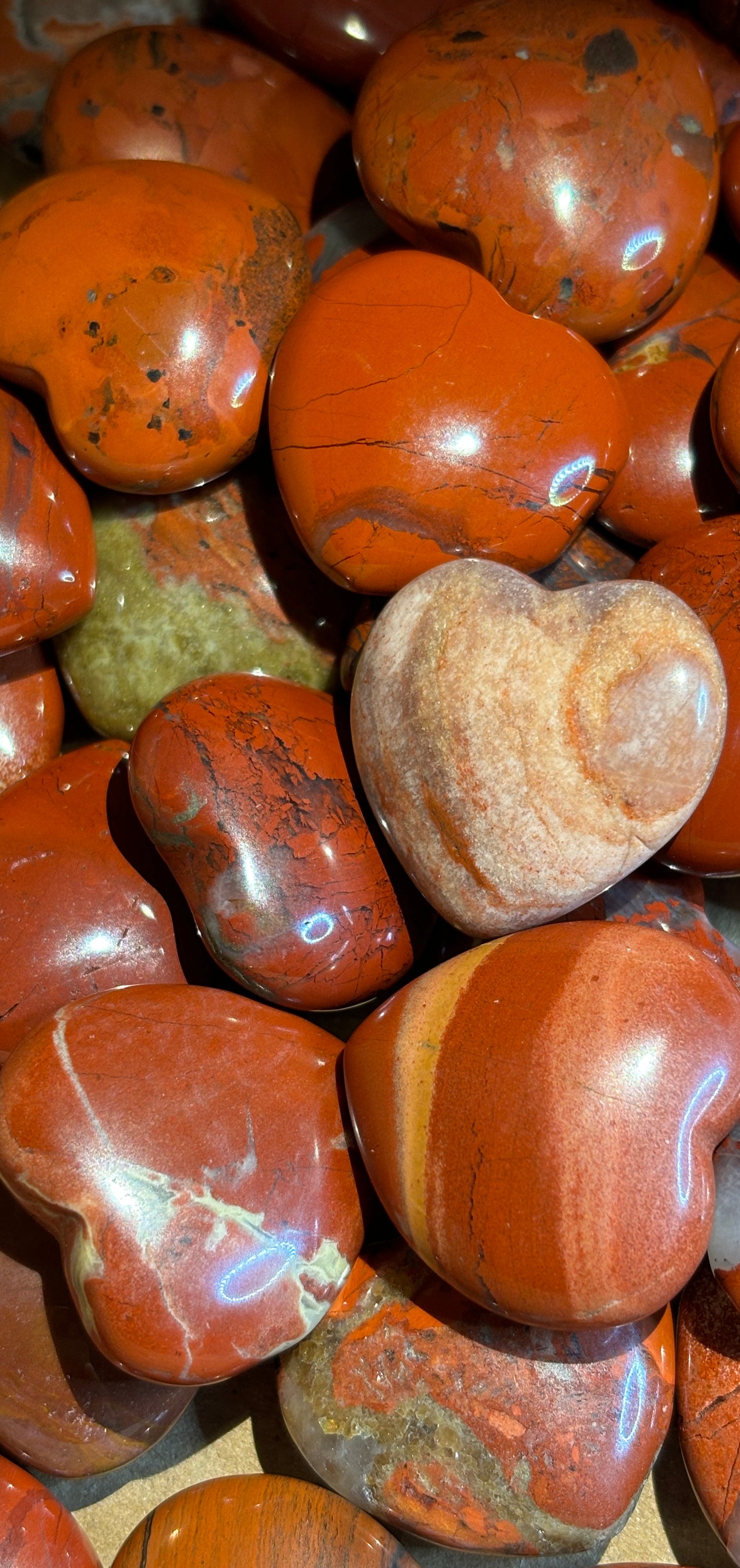 The intention behind these red jasper hearts is to ground and energize, allowing you to carry its revitalizing force wherever you go. To best utilize your red jasper heart, hold it during meditation, place it on your desk while working, or keep it in your pocket throughout the day. Its warm color and empowering energy make it an ideal companion for those needing motivation or seeking to boost their confidence and stamina.