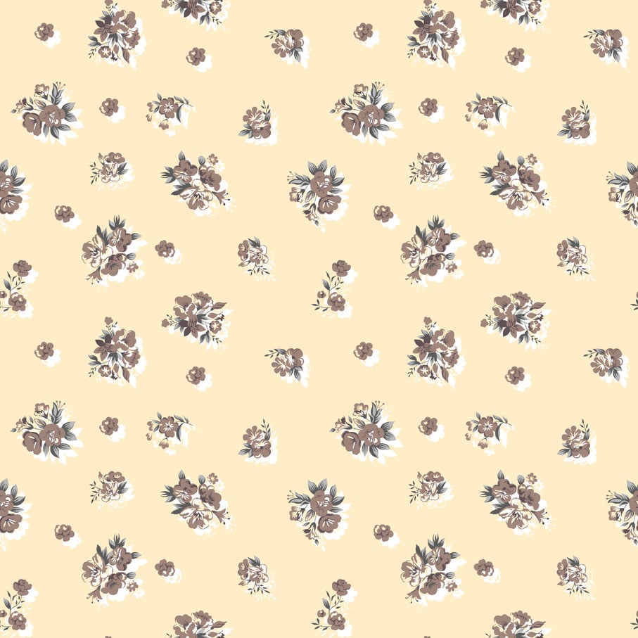 Brown-white-green floral clusters on light beige base
