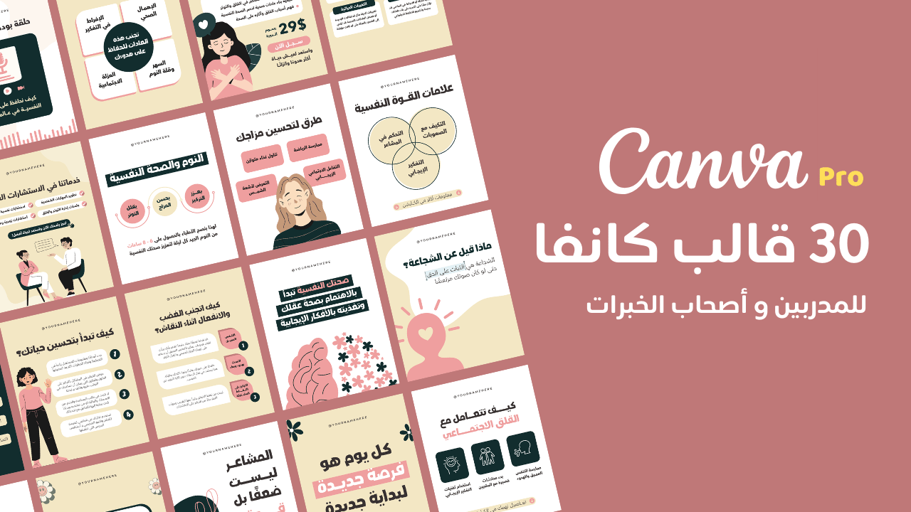 باقتنا المكونة من 30 قالب كانفا احترافي مصممة خصيصًا للمدربين والمستشارين الذين يرغبون في الظهور بهوية بصرية قوية أمام جمهورهم.