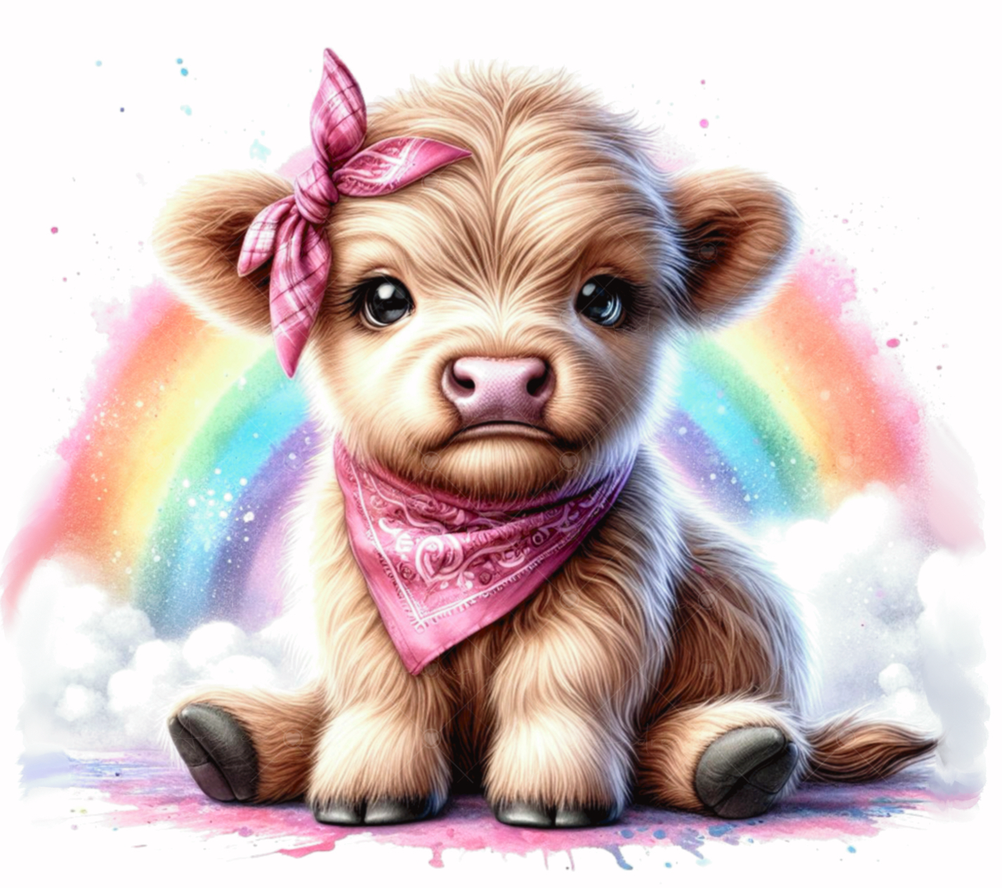- baby girl cow with rainbow and banner, PNG and JPEG format.