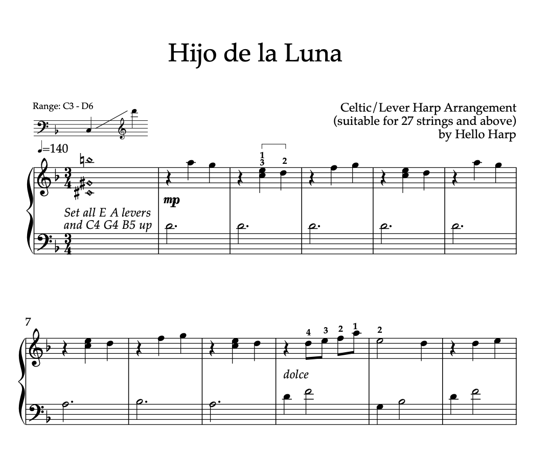 Hijo de la Luna - Mecano (Celtic/Lever Harp Sheet Music)