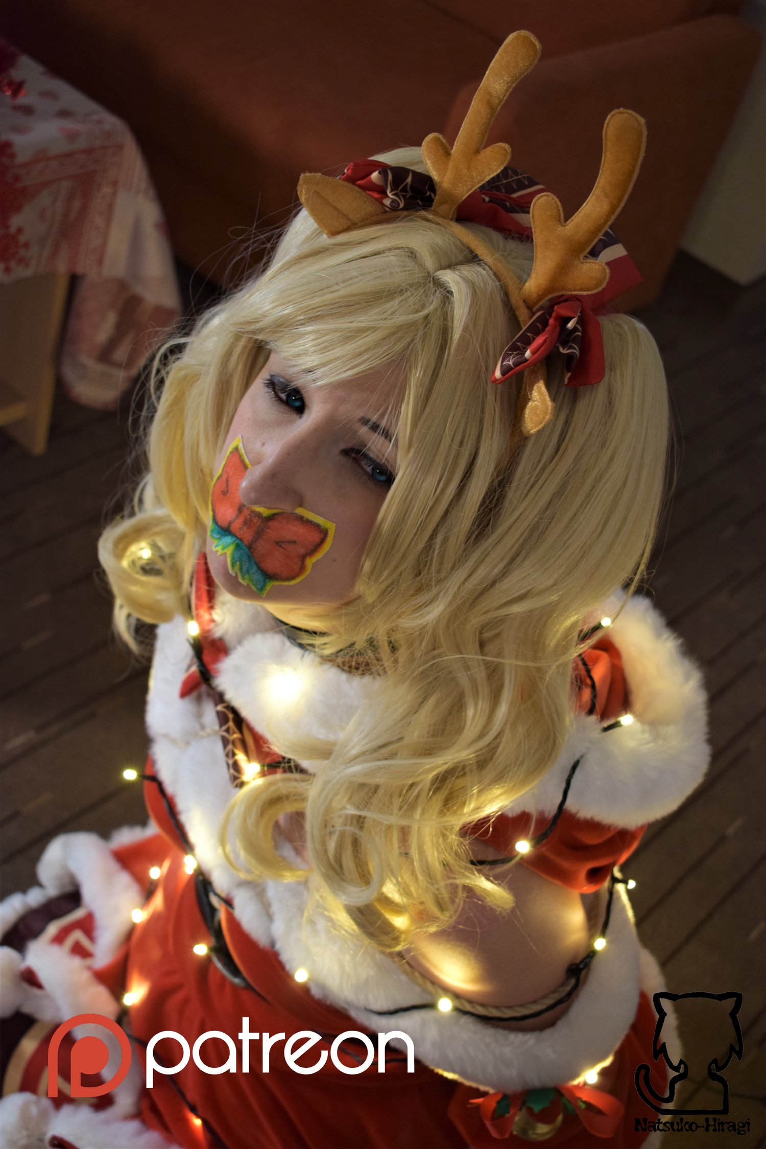 Kitty cosplaying as: Barbara (Christmas outfit)