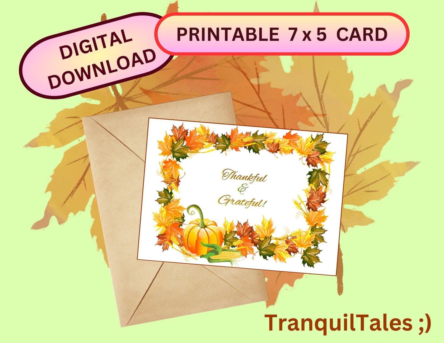 THANKFUL & GRATEFUL CARD - 7" x 5" - PDF FILE - AUTUMN & FALL - THANKSGIVING SEASON