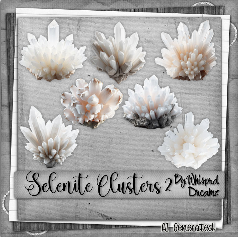 Seven tagger-size Selenite clusters, ready to use. 300dpi