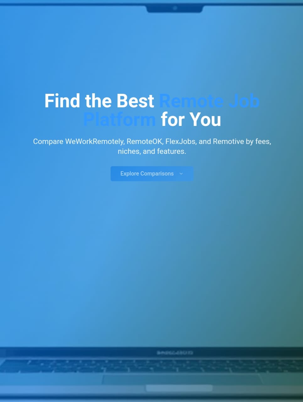 A sleek, responsive landing page comparing WeWorkRemotely, RemoteOK, FlexJobs, and Remotive by fees, niches, and features—perfect for job boards, career blogs, or affiliate marketers.