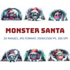 Transform your creative projects with our "Cute Monster Santa Clipart" collection! This digital pack includes 20 unique and whimsical images, each in JPG Format at a high resolution of 300 dpi and 3500x2500 px.