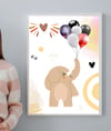 Baby Elephant with balloons Printable, Nursery Wall Art Decor, Kid bedroom wall art, Baby Animal Print, Gender Neutral Nursery Digital Art.