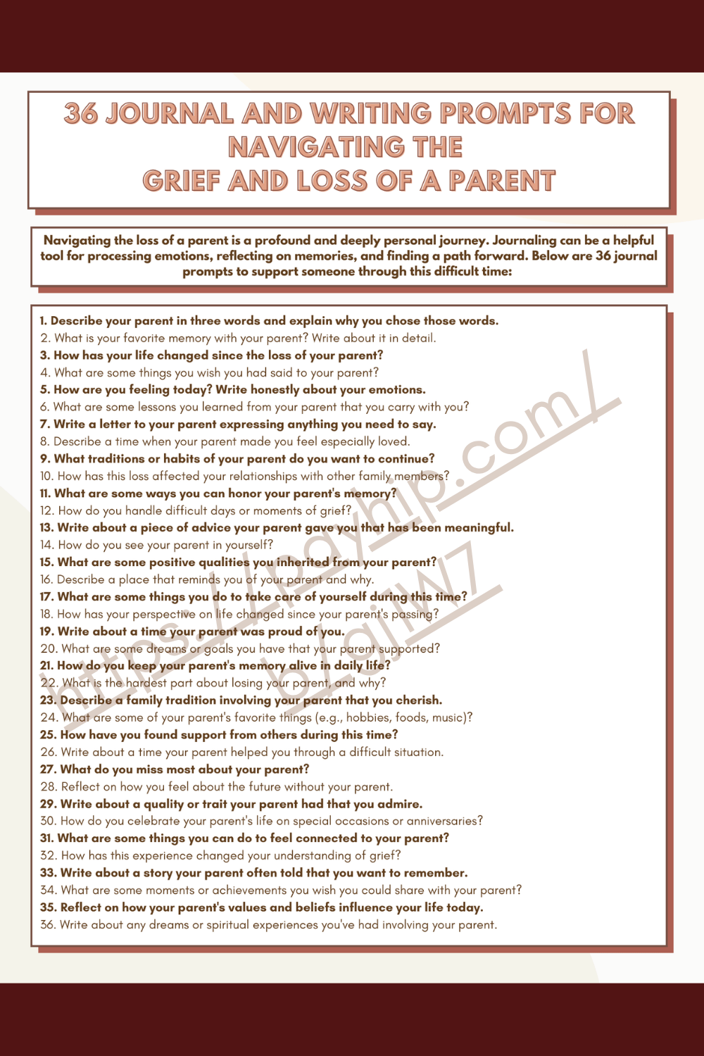 36 Journal Prompts for Grief and Loss of Parent (Worksheet)
