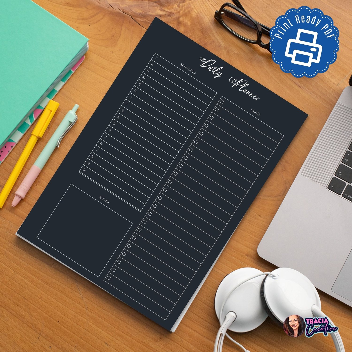 Daily Planner Insert - Dark Mode - Printable Digital Download PDF