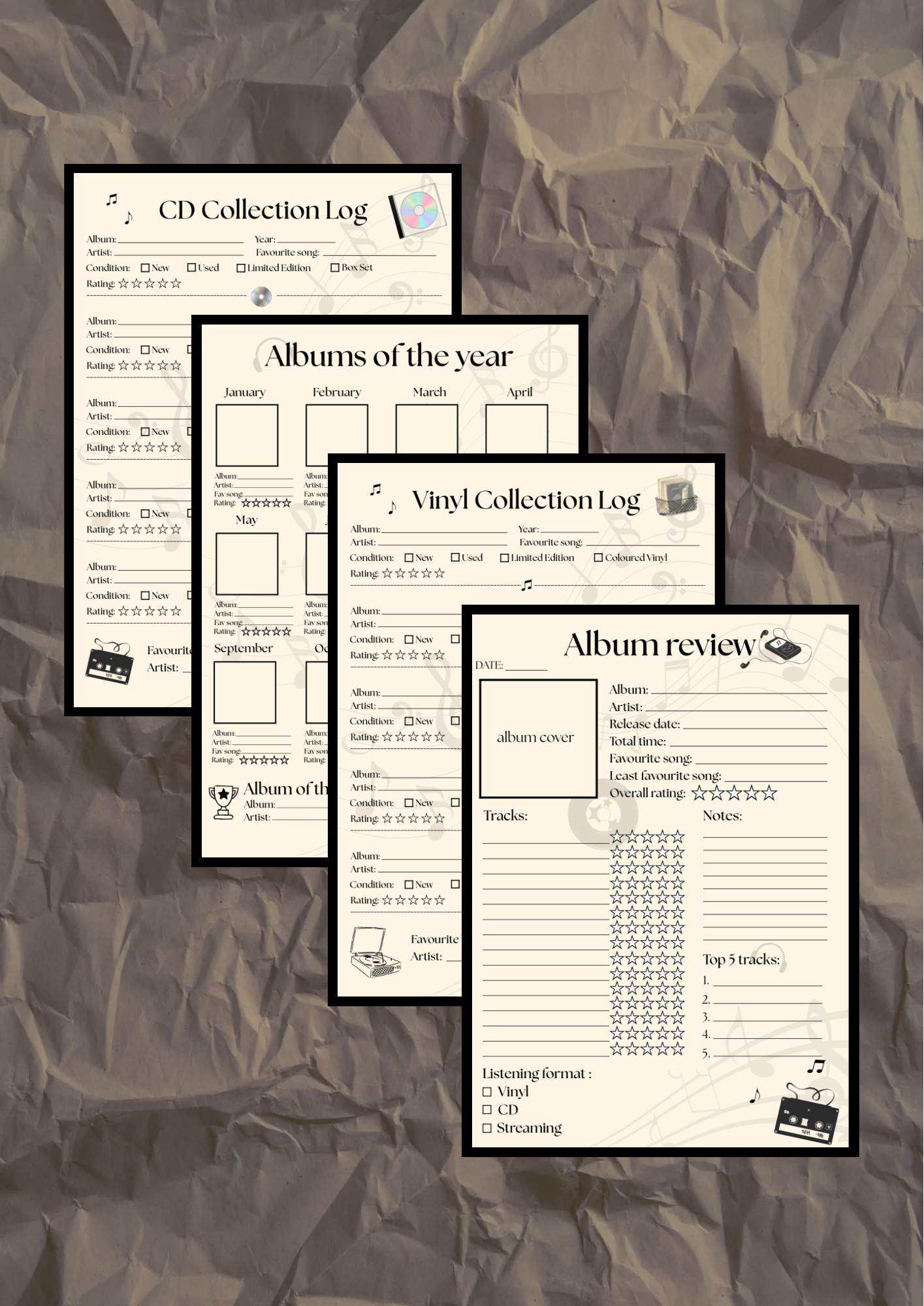 Music Journal for all my music lovers! You can track current album you’re listening to or track all your favourite albums throughout the year. Also log all the vinyl records and CDs you own and rate them to your liking. xoxo