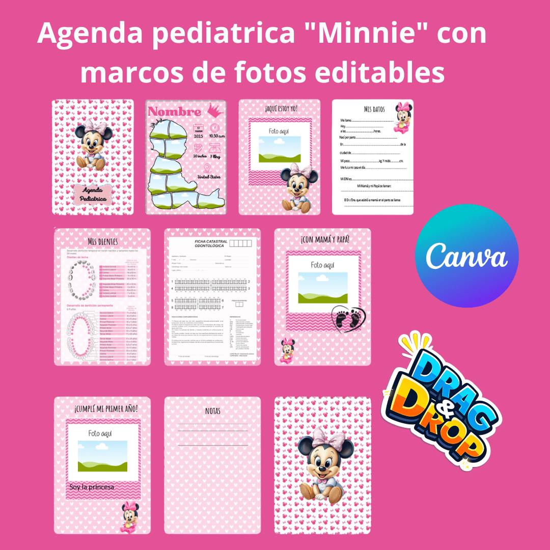 Agenda pediatrica Mini con marcos de fotos editables