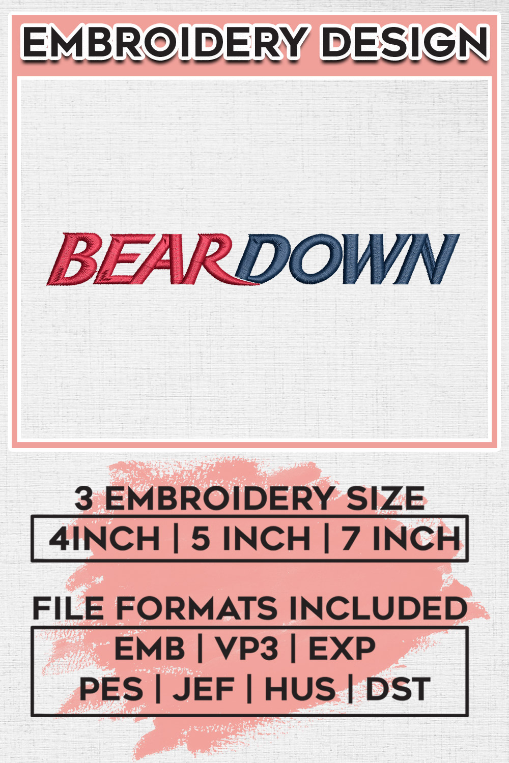 Bear Down NCAA Football Team Logo Embroidery Designs, NCAA Arizona Wildcats Machine Embroidery Files, NCAA Logo embroidery designs, NCAA Arizona Logo, Digital Download