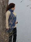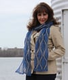 This lacy scarf / stole uses intarsia to accentuate its wavy lines and can be made in anything from lace weight to sport weight.