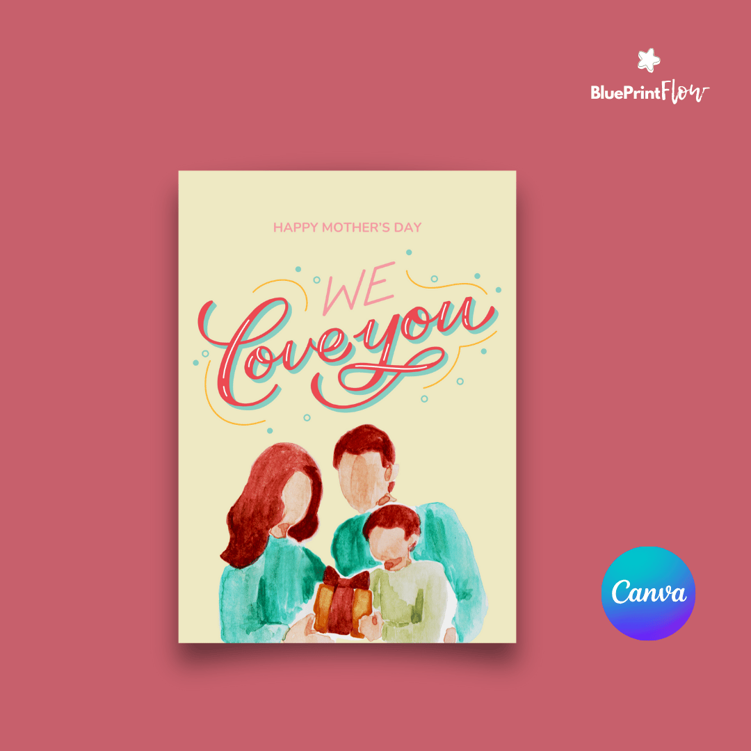 [FREE] Family gifting Mother We Love You Mother's Day Card Canva Template