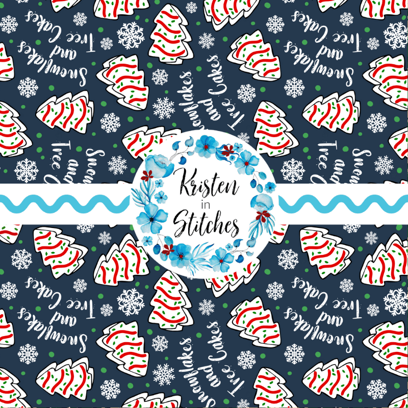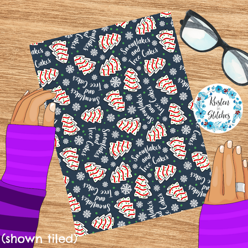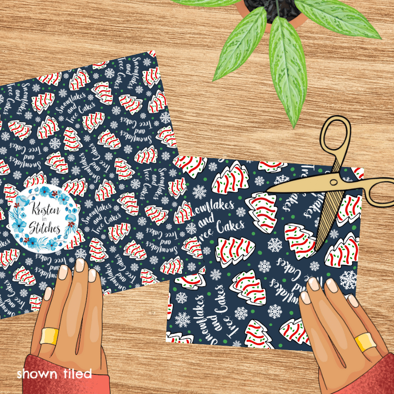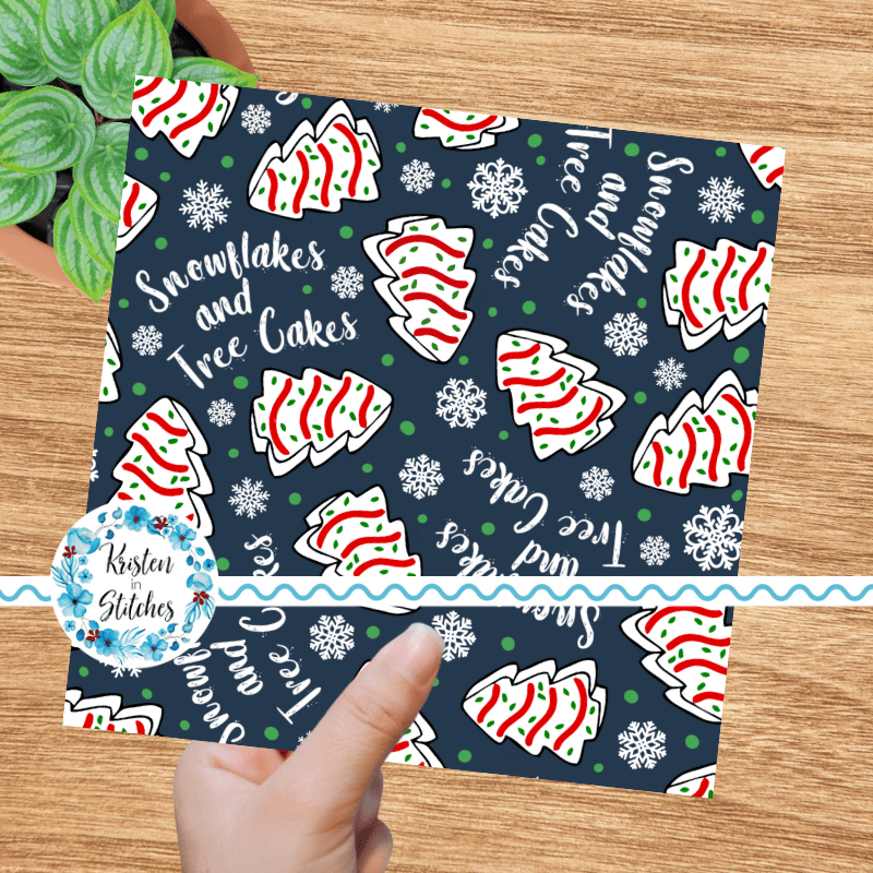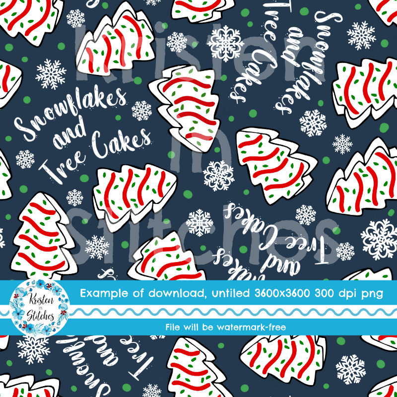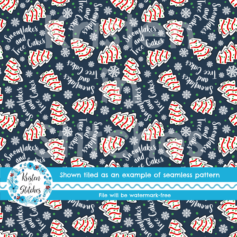 Snowflakes and Tree Cakes Seamless Pattern, Little Debbie Christmas Snacks