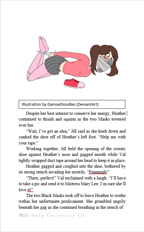 Content includes: F/F bondage of numerous different dynamics, kidnapping, nonconsensual bondage, hazing, blackmail, feet, socks, nylons, duct tape, mild smell fetish.