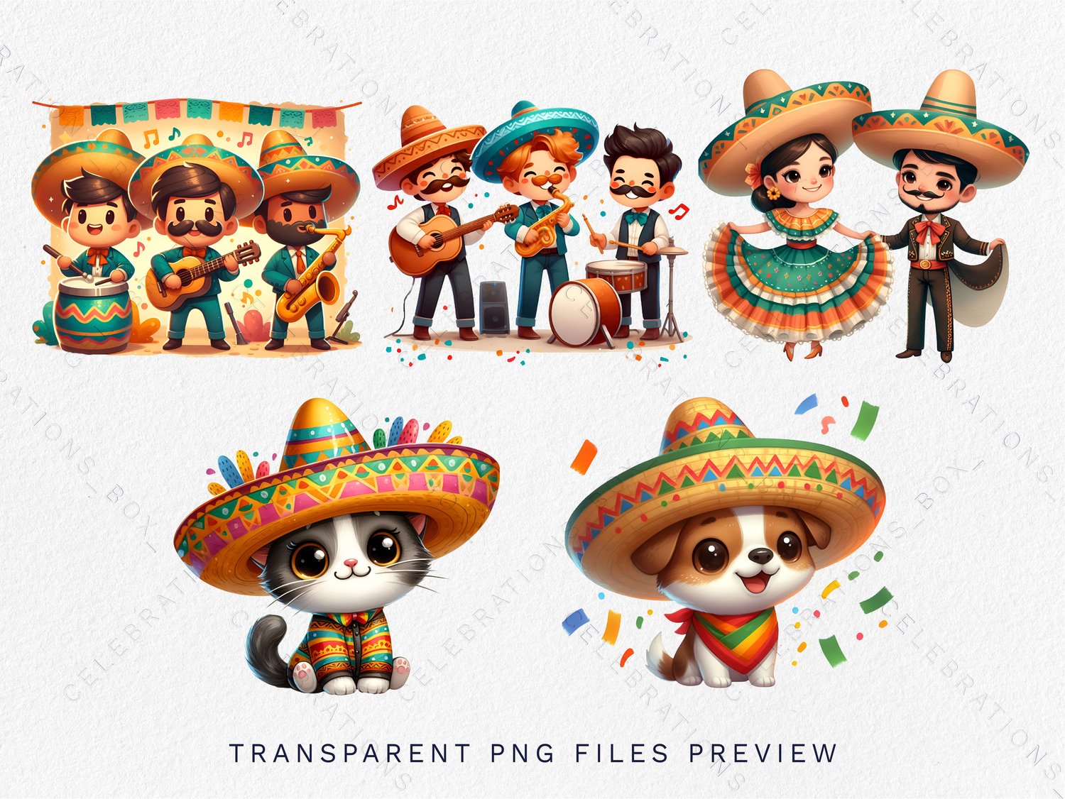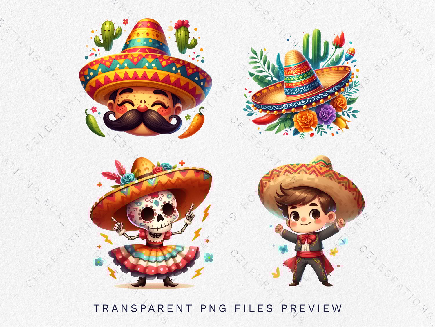 Spice up your projects with the vibrant and festive 27 Mexican Fiesta Clipart Bundle! This lively collection captures the essence of Cinco de Mayo and the colorful spirit of Mexican celebrations. Perfect for adding a touch of fiesta flair to your party invitations, decorations, and more.