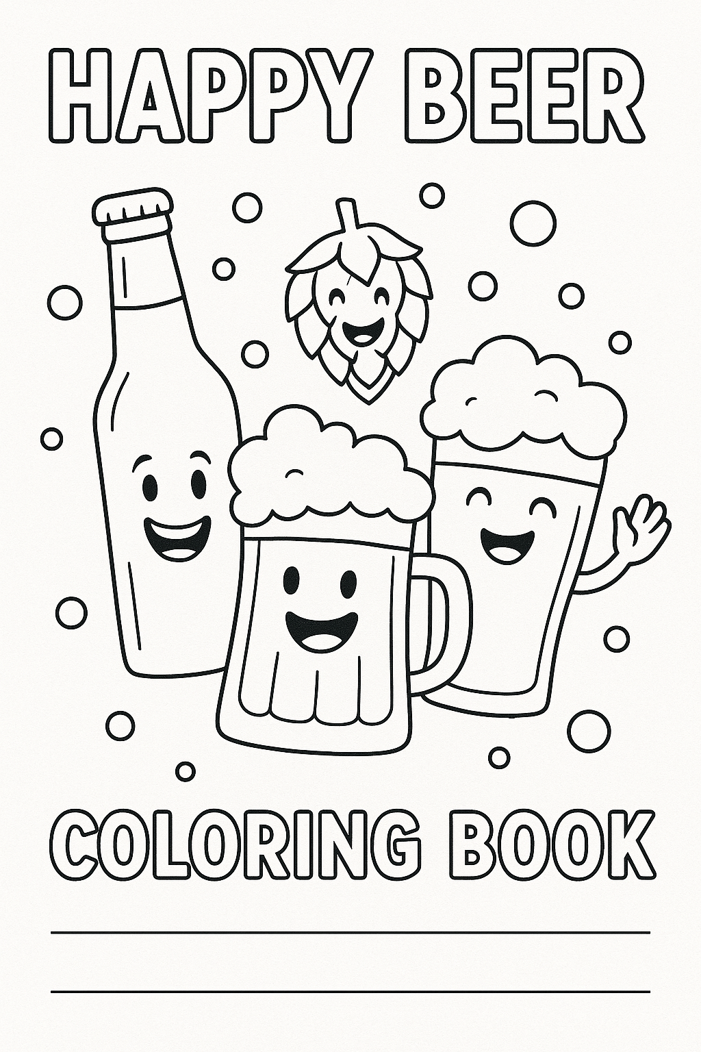 Happy Beer, coloring ebook, 65 designs, digital product, instantly download