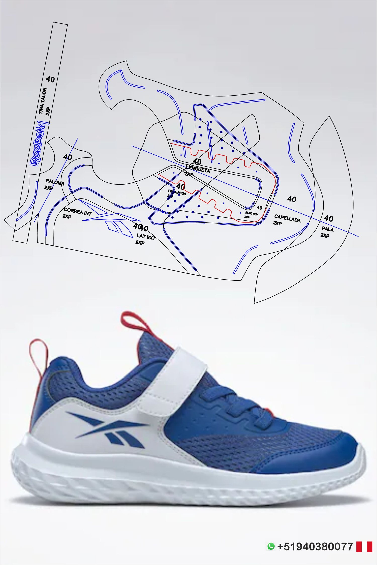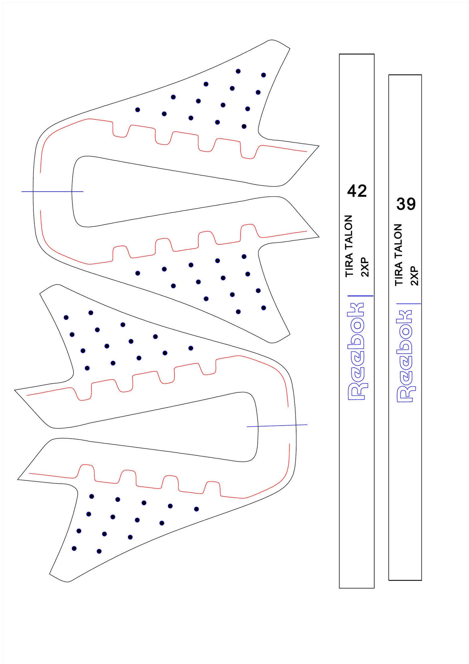 patrón de zapatilla urbana en hoja A4 PDF talla escaladas del 38 al 43. listo para imprimir y hacer tu propia producción.