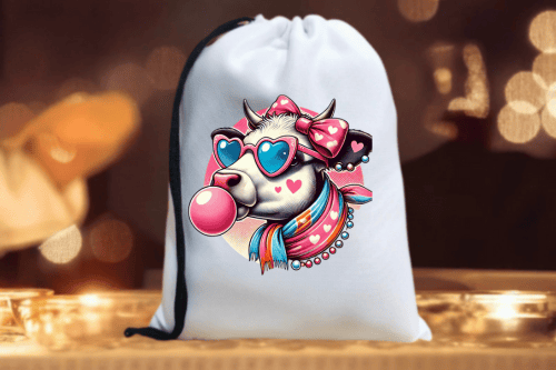 Celebrate Valentine’s Day with this adorable design featuring a cute cow, perfect for adding a playful and sweet touch to your projects. This charming design is ideal for custom sacks, bags, or gifts, making your Valentine's Day creations extra special and fun.