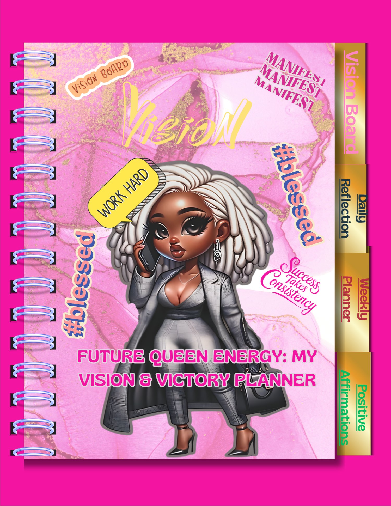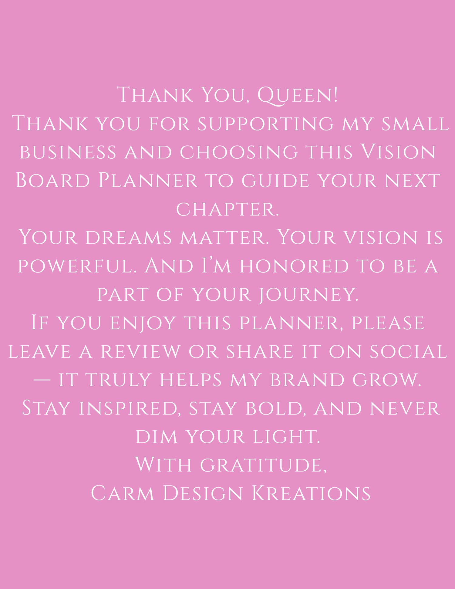 nlock the life you’ve been praying, planning, and grinding for with this beautifully designed Vision Board Planner.