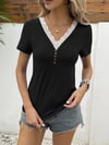 Y&BL Lace Trim V-Neck Short Sleeve Blouse