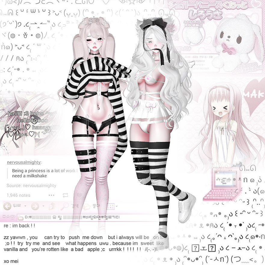 - 6 skin textures / 6 haircolors // pink / black / white swaps for everything .