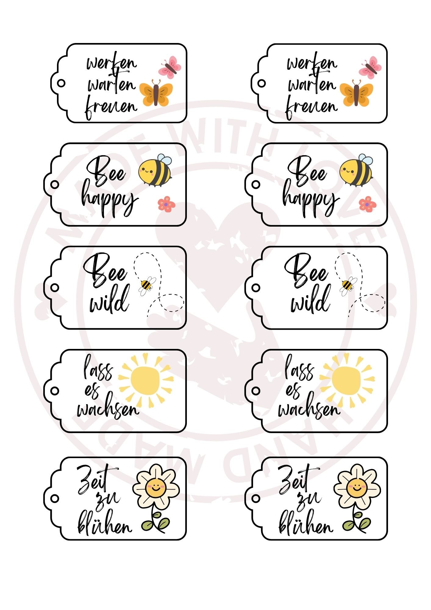Die Anhänger passen perfekt zu Reagenzgläsern, kleinen Tütchen oder anderen Verpackungen mit Samen- oder Blumenmurmeln und sind ideal als Mitbringsel, Gastgeschen, Osternest oder kleine Freude zwischendurch.