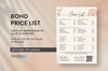 Save yourself time from manually writing out your current price list Flyer by using the versatile BohoPrice List Template! Get organized today!