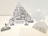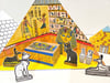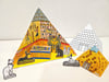A pyramid triorama with pieces to cut and paste, showing what might be found inside