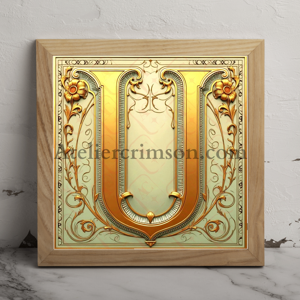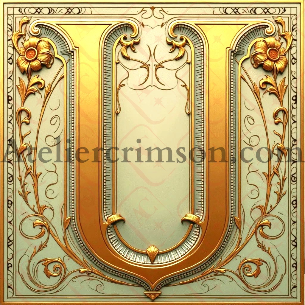 The letter U gold metal art nouveau Download Now this high quality AI-generated image, perfect for adding a touch of tranquility and creativity to any space.