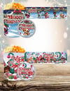 - Super cute gingerbread characters, candy canes, snowmen, deer, and cozy winter village background