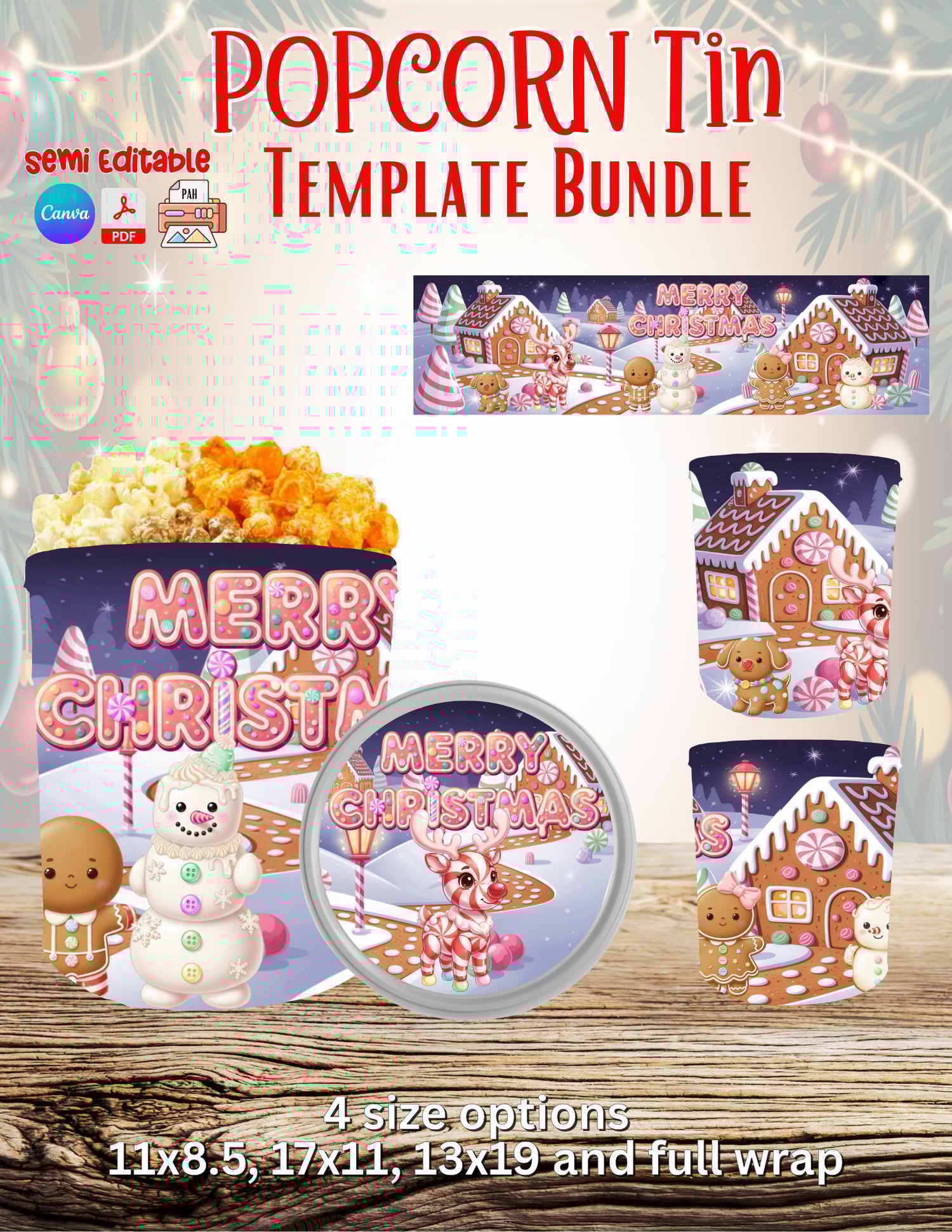 Bring the magic of a candy coated Christmas straight to your holiday treats with this adorable Popcorn Tin Template Bundle. Perfect for craft fairs, gift sets, custom orders, stocking stuffers, party favors, holiday baskets, and small business holiday drops. Simply edit in Canva (semi editable), download, print, and wrap. Holiday sales made easy!