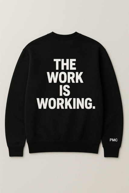 This premium heavyweight crewneck brings together minimalist streetwear style with the power of your personal growth journey. Featuring a strong front graphic and a subtle PMC sleeve logo, it’s designed to remind you who you’re becoming every time you wear it.
