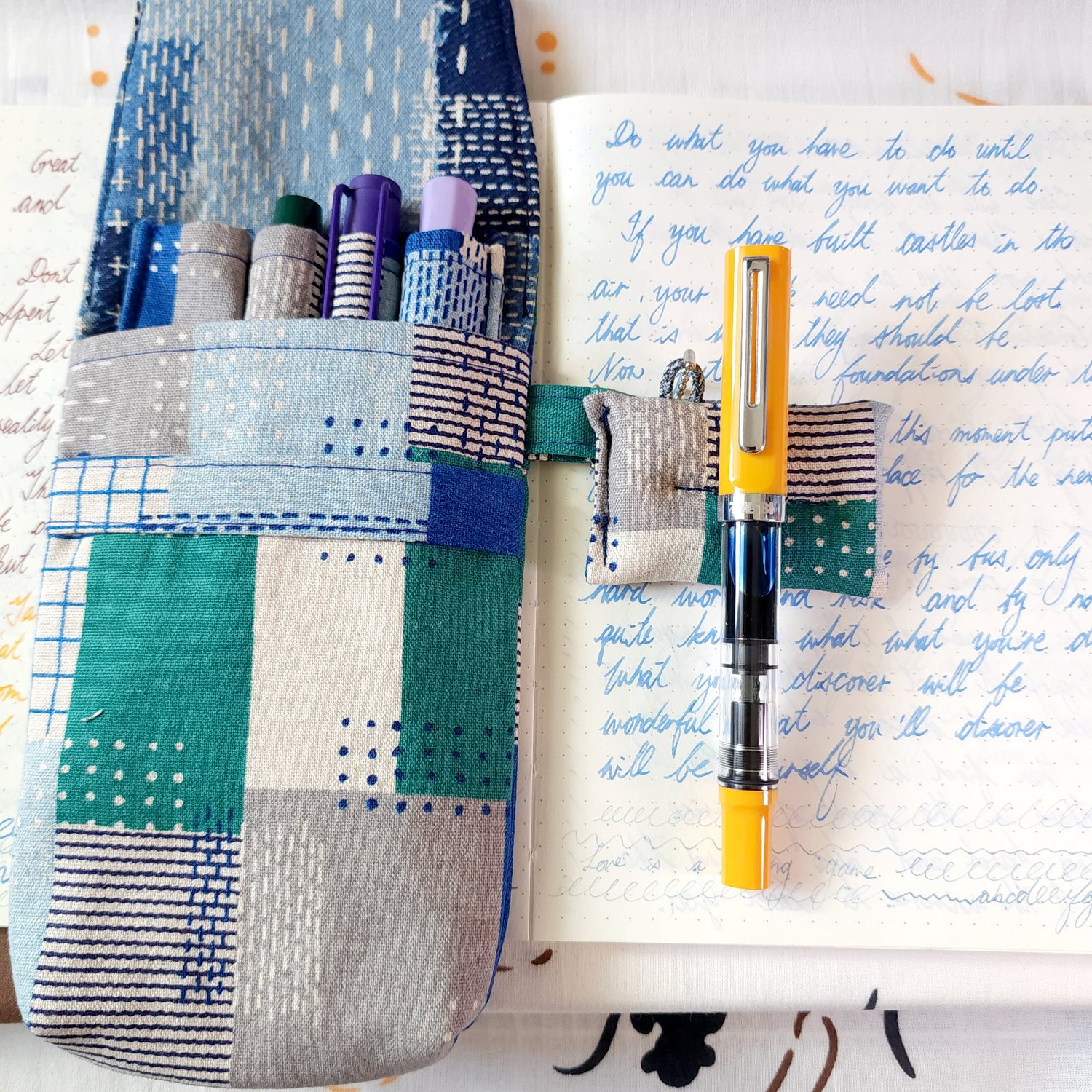 4 slots Fountain pen case-Green Loves Blue