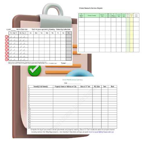 3 Forms - Work Calendar, Client Status & Invoice Report, and End of Month Invoice Summary
