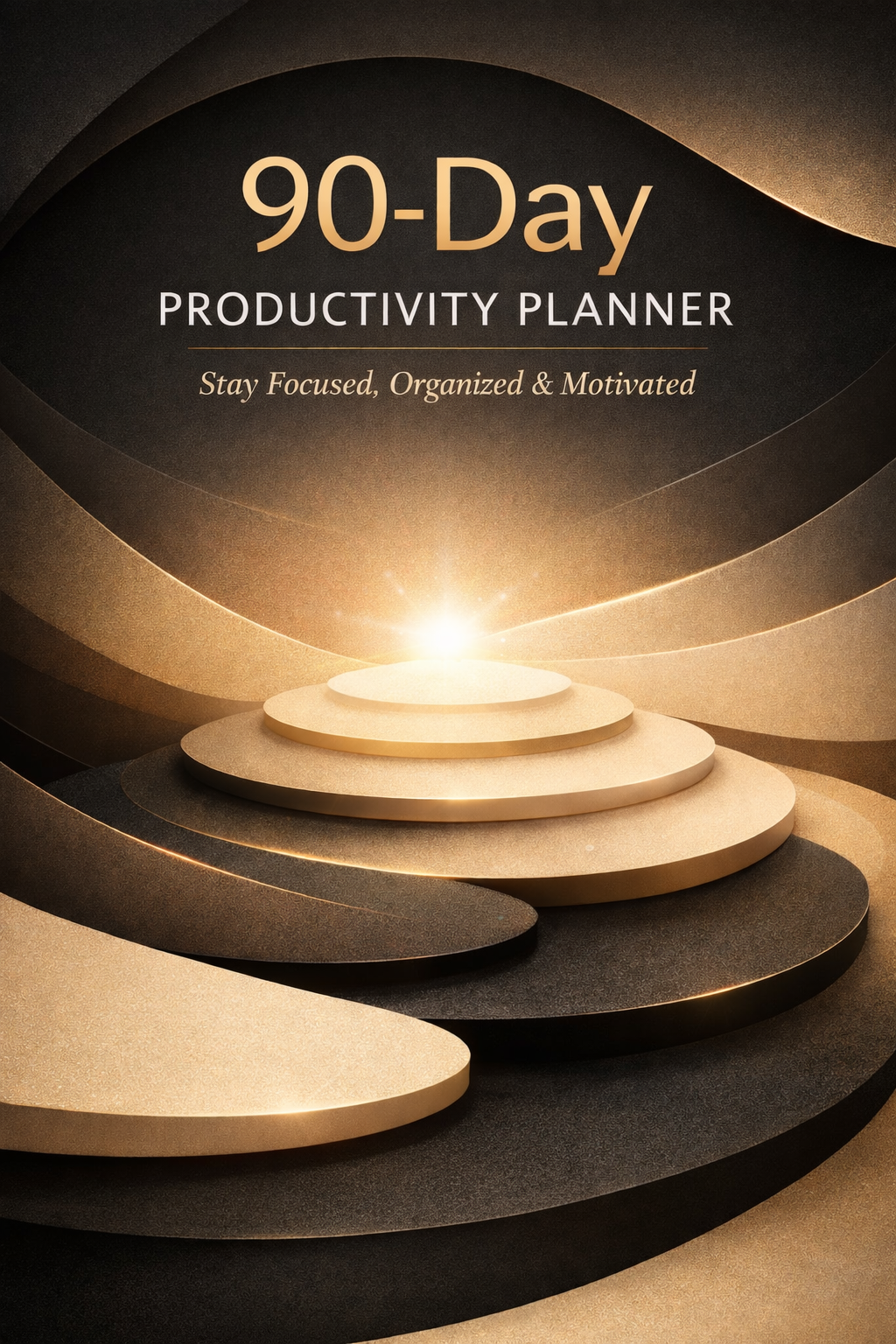 A simple, clean 90‑day digital planner designed to help you stay focused, organized, and productive. Includes daily pages, weekly planning, habit trackers, goals, and reflection sheets. Perfect for anyone who wants more clarity and structure.