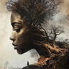 A woman’s profile emerges from ancient roots and living earth, her form shaped by time, memory, and endurance. Tree roots weave through her crown and skin, reminding us that lineage is not something we look back on — it is something we are.