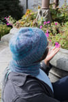 Using Mohair and Dk held together with slip sts to make the pattern to evoke an etherealness. However this can be knit using held together yarns or a single stand of worsted.