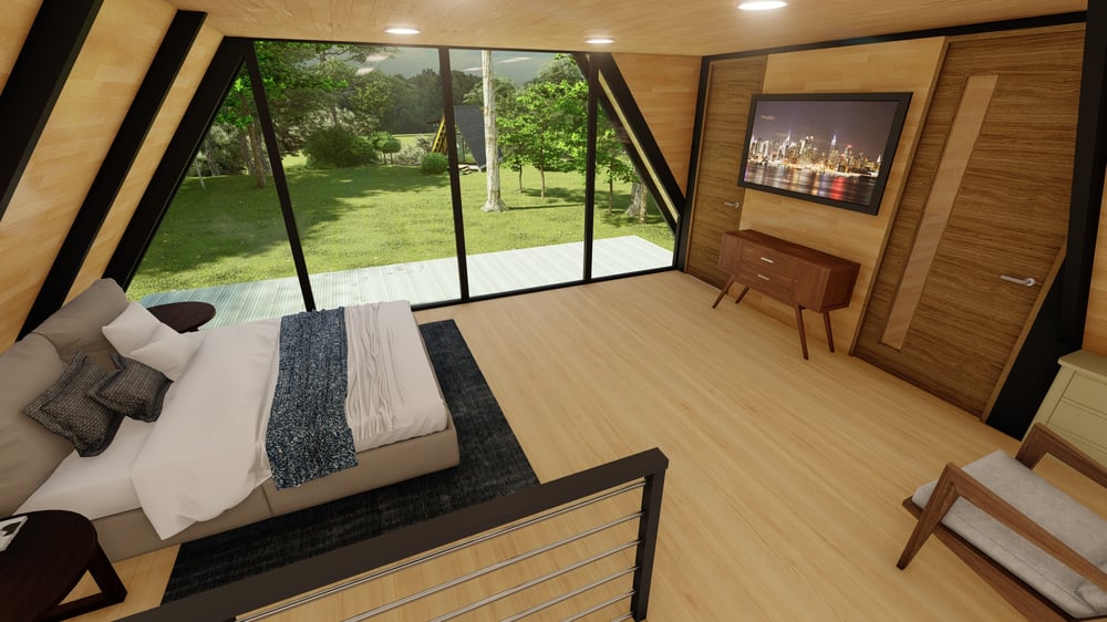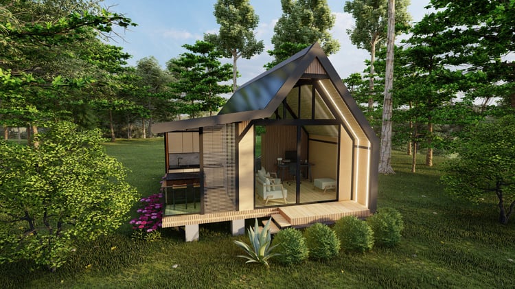 Una cabaña pensada para aprovechar la luz natural y las vistas exteriores.